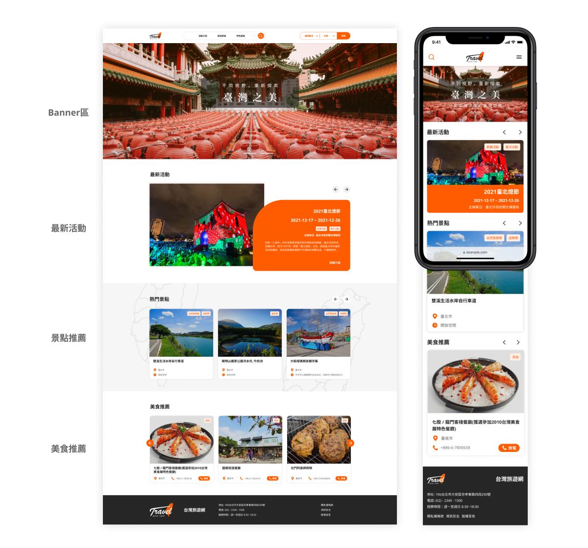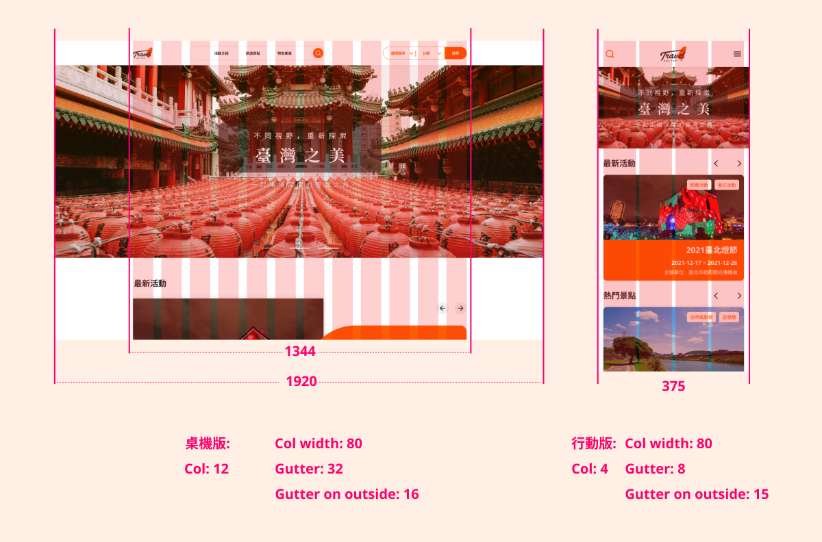 此作品是參加的 2021 The F2E 精神時光屋的 UI 作品,以臺灣旅遊導覽為主題,結合交通部「運輸資料流通服務平臺」(TDX) Open API 設計出一個 使用者能容易瀏覽、方便篩選的旅遊導覽網站。